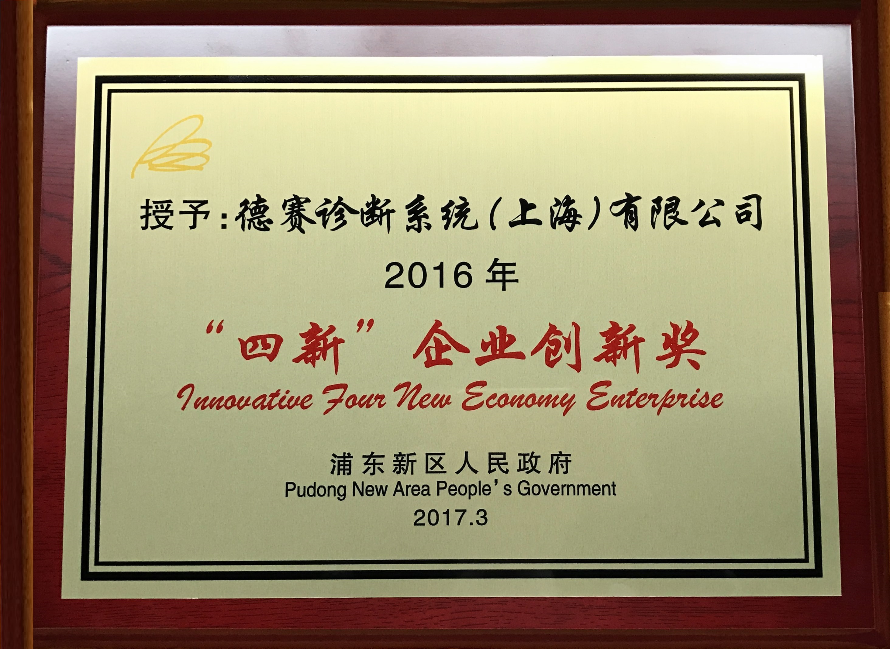 3377官方网站子公司德赛诊断荣获上海市浦东新区2016年“四新”企业创新奖