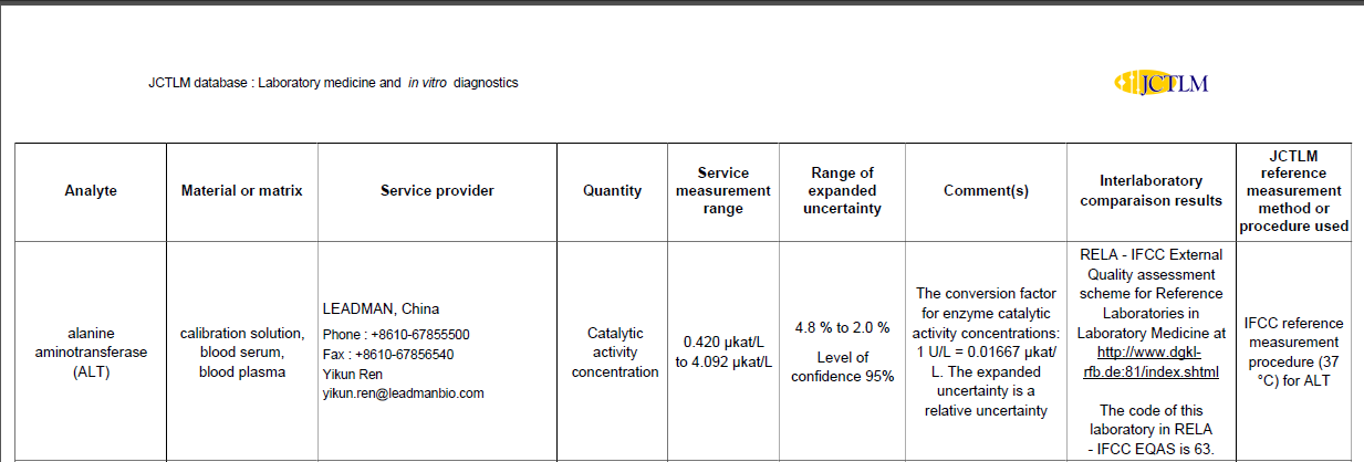 喜讯!3377官方网站医学参考实验室正式进入JCTLM参考测量服务实验室数据库