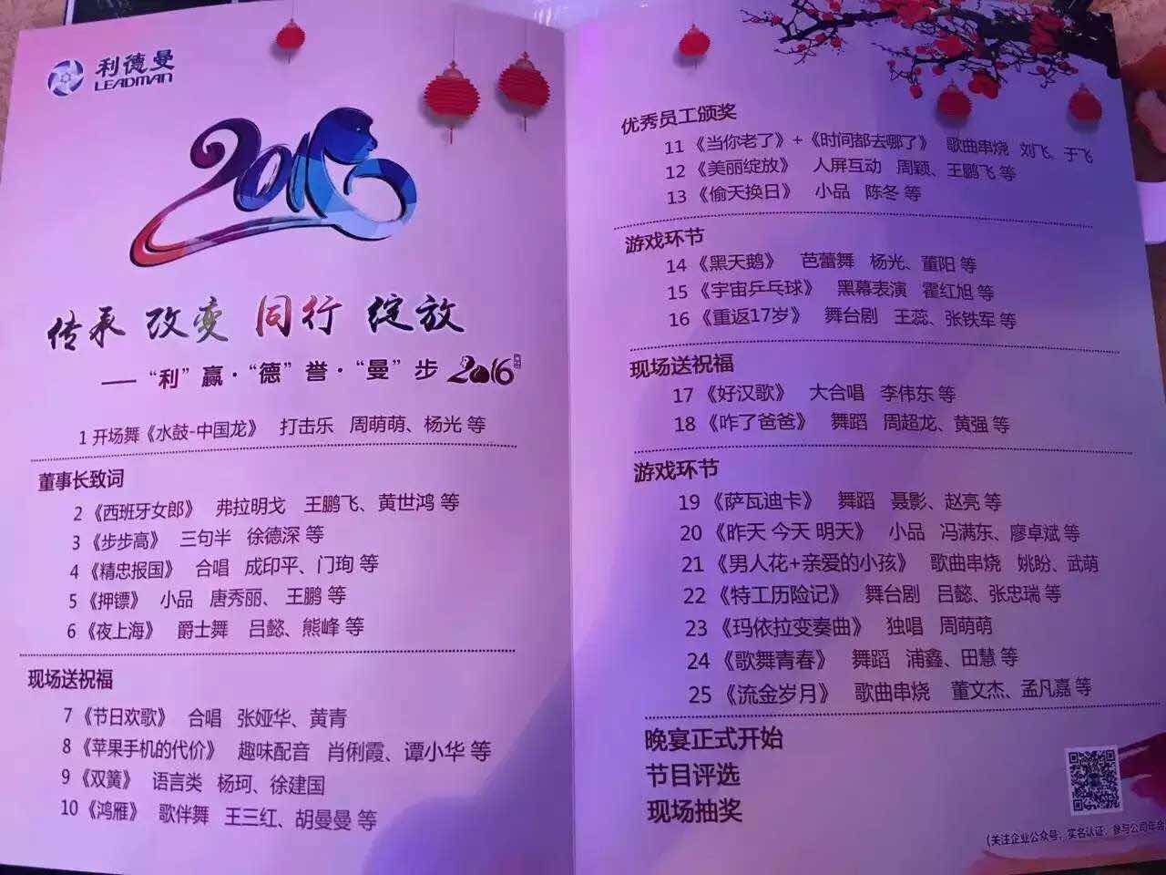 去旧图新、万象更新;高朋满座、金猴呈祥。3377官方网站集团2016年新春年会“传承·改变·同行·绽放 '利'·赢 '德'誉·'曼'步2016”于2016年1月29日下午在3377官方网站三期隆重举行。